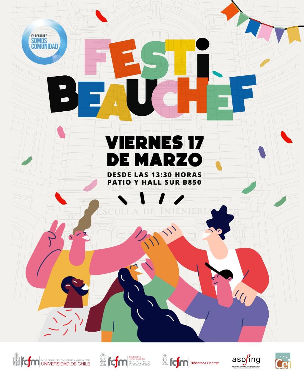 Las actividades siguen en la primera semana de clases. Desde el 13 al 22 de marzo las y los mechones podrán participar del festival de resolución colaborativa de problemas; taller de género y diversidad; conversatorio “Todo lo que quieras saber sobre los controles del DIM y no te atreves a preguntar”; conoce a los CC.EE de la FCFM; english corner; zumbatón mechona; ludoteca y FestiBeauchef.