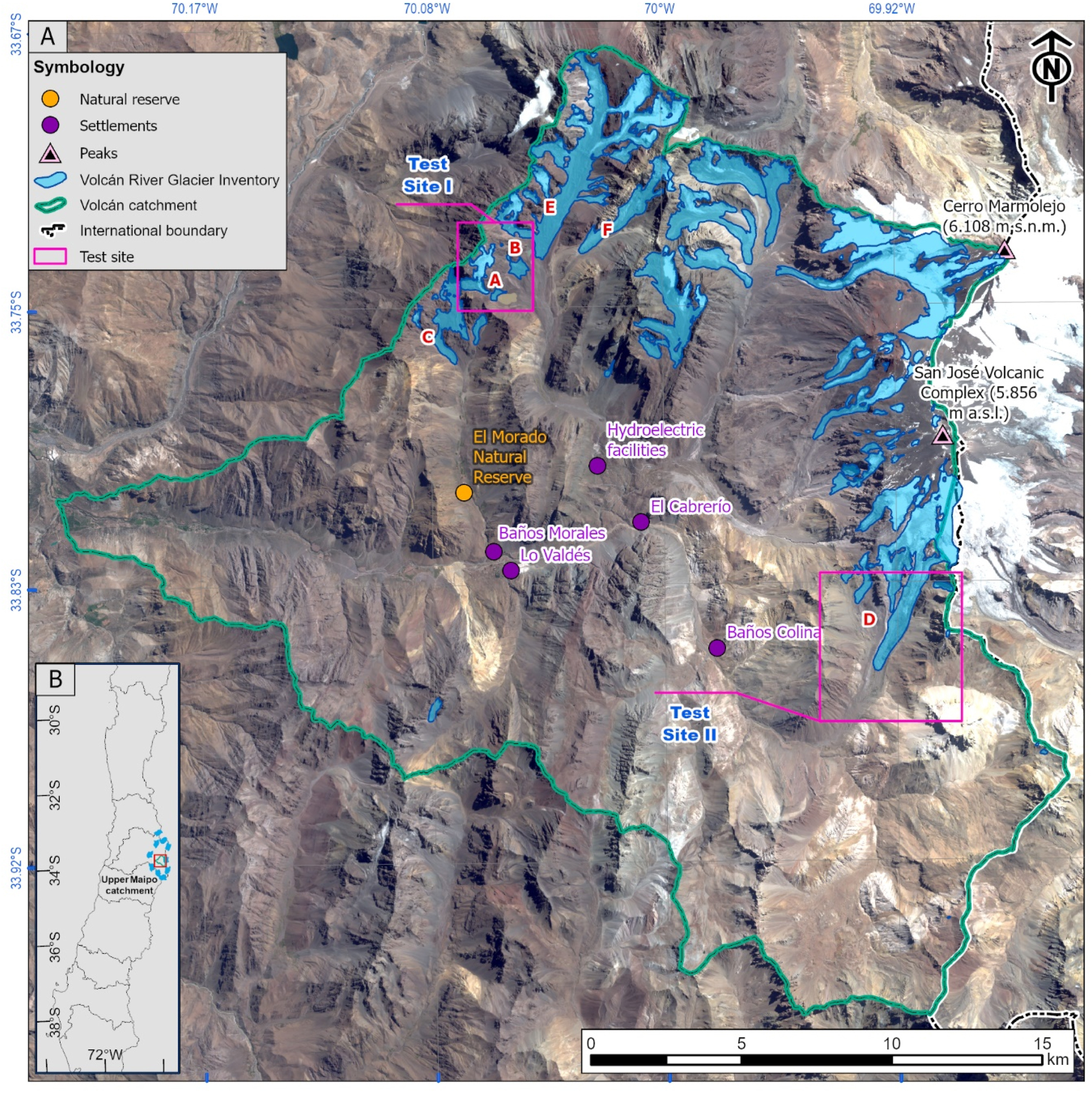 El valle del río Volcán, ubicado en el Cajón del Maipo, Región Metropolitana, cuenta con diversas localidades, como El Volcán, Baños Morales, Lo Valdés, Termas de Colina y Parque Arenas, además de proyectos de infraestructura, como la central hidroeléctrica Alto Maipo. Es un destino sumamente popular, visitado por turistas durante los fines de semana y en época estival. Estudios de este tipo son un primer paso para avanzar en la protección de estas comunidades.